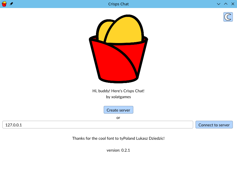 You can download the new version from Codeberg ๐๏ธ ๐ https://codeberg.org/xolatgames/Crisps-Chat/releases/tag/v0.2.1